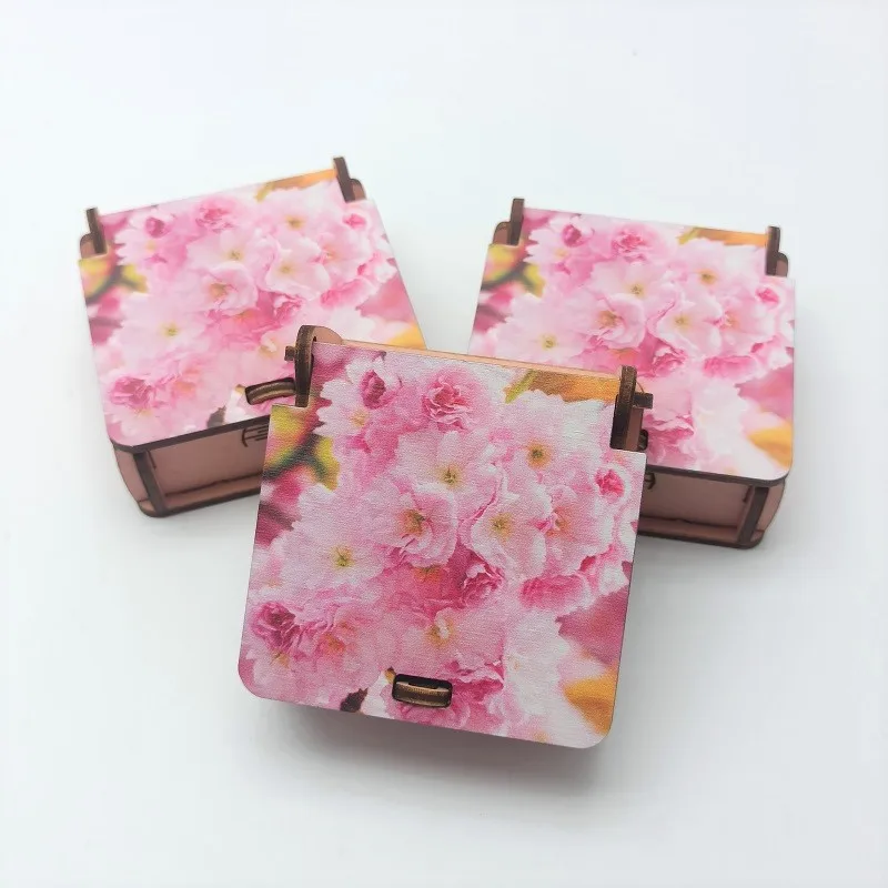 Внутри и снаружи коробочки окрашены декоративной пропиткой для дерева, на крышке цветная УФ-печать.