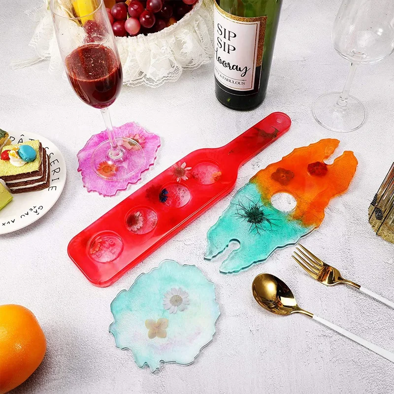 DIY in your way: resin casting mold is a fun item, suitable for all ages, put the refill into the mold, you can add some resin paint to create a personalized wine rack according to your preferences, such as sequins, dried flowers, resin dyes and other decors, wait the resin get solidified and then twist the mold and push the completed shape out, make a beautiful tray mold with your imagination, you can also send the finished product as a meaningful gift for your family, friends and loved ones