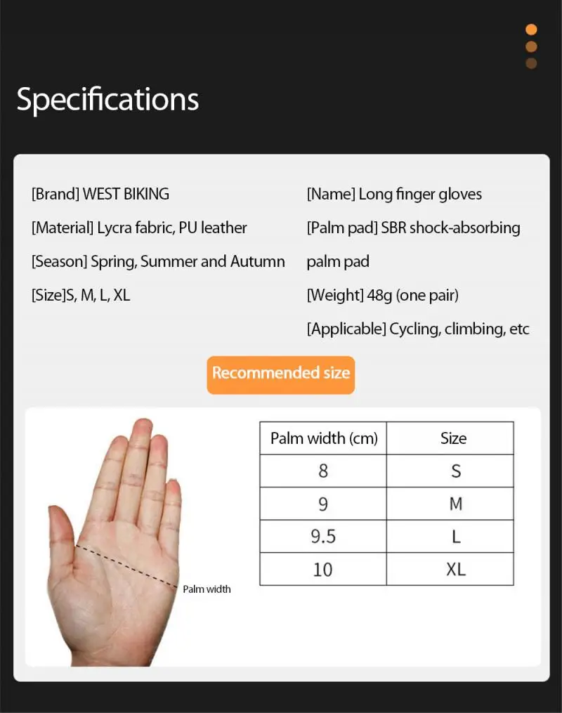 5. Стабильная и удобная посадка: подходит для различных типов рук, задняя часть руки имеет степень эластичности, чтобы создать более комфортную среду для рук, А Впитывающее пот полотенце снаружи большого пальца легко вытирает пот.