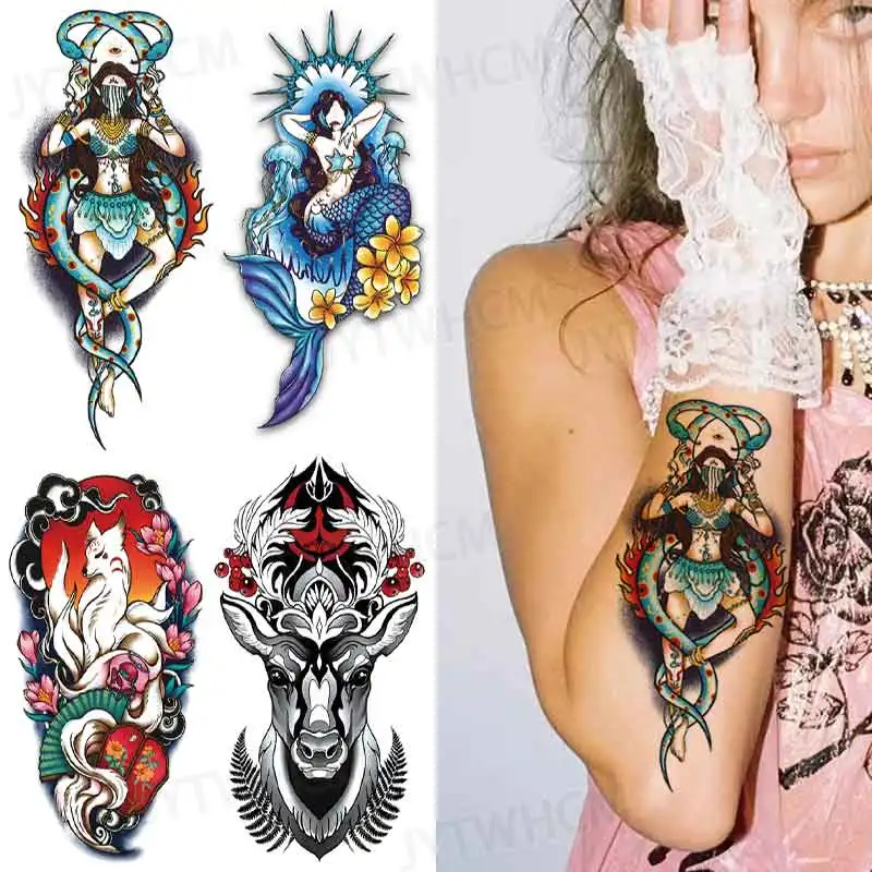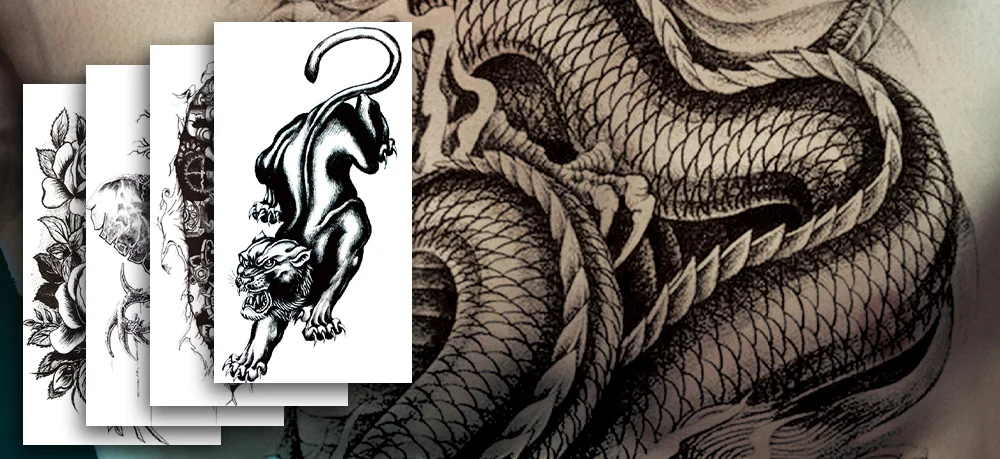 Временная водостойкая Татуировка племени цветок дракон змея Сексуальная крутая Татуировка женский Лев череп-Тотем тело искусство рука Поддельные рукава татуировки