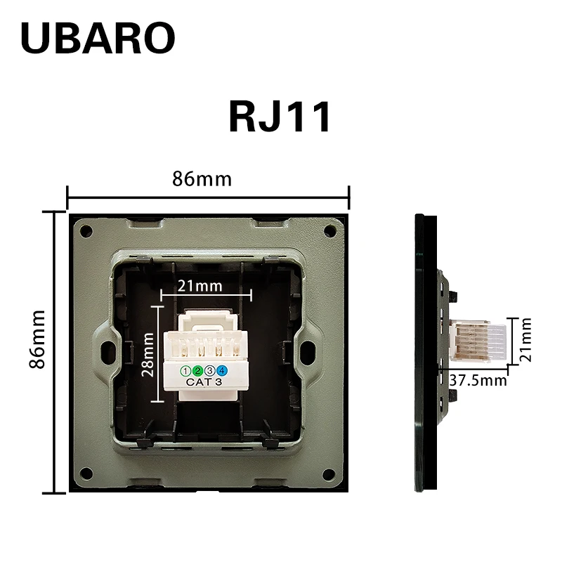 UBARO немецкая стандартная стенная розетка из закаленного стекла Combinationt RJ45 RJ11 ТВ USB подключение терминал домашняя розетка AC100-250V 16A