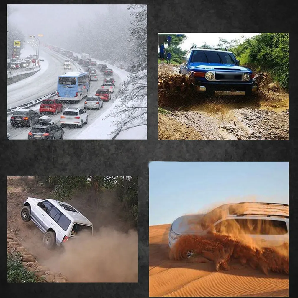 4. Широкий спектр применимых шин: это идеальный инструмент для путешествий, альпинизма, снега, льда, песка и грязи и может увеличить тягу автомобиля в суровых условиях.