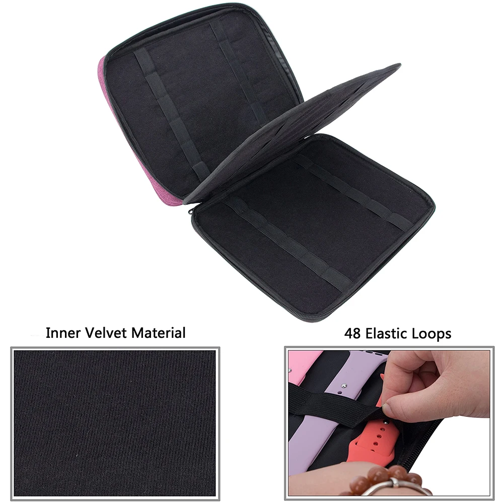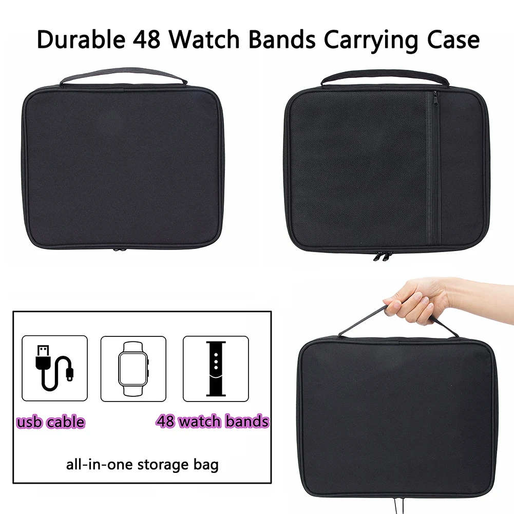 48 Slots Portable Wrist Watch Strap Storage Bag Travel Double Layer Watchband Charging Cable Organizer Holder Pouch Case
