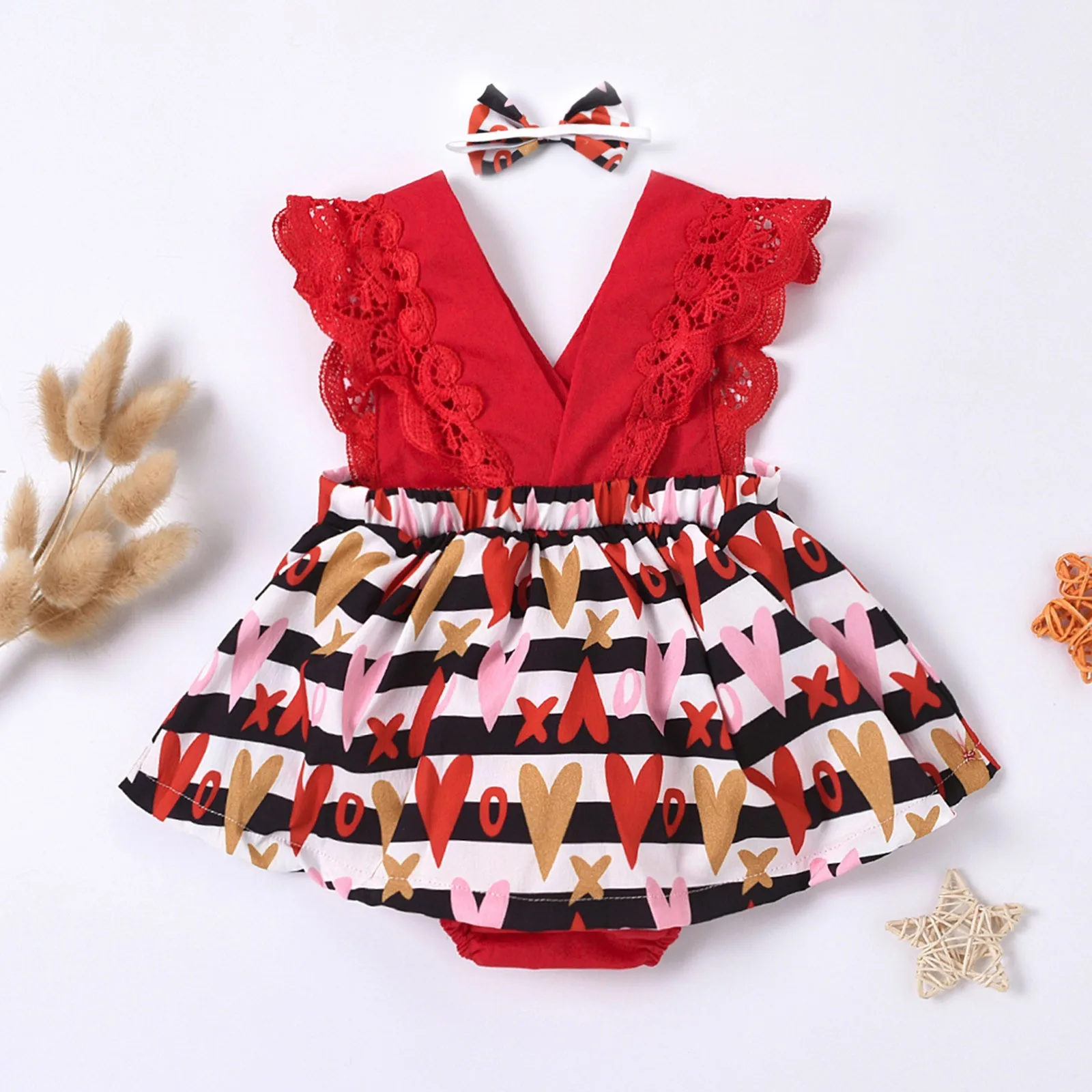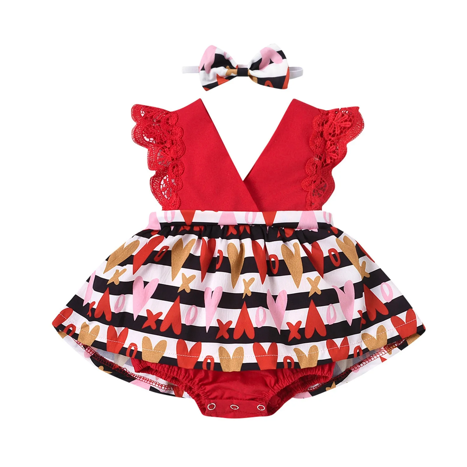 Детский комбинезон без рукавов с принтом на День святого Валентина, комбинезон + повязка на голову, комплект одежды