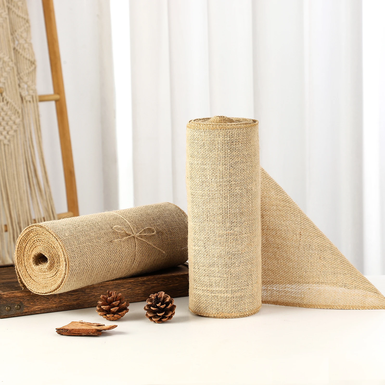 Длинная ткань натуральная Мешковина настольная дорожка аккуратная строчка Экологичная Мешковина настольная дорожка для свадебной вечеринки украшение12 дюймов x 10 ярдов
