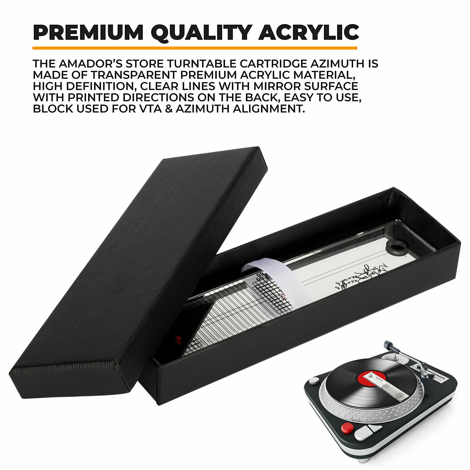 Особенности: Помогает устранить ошибки отслеживания, особенно на внутренних канавках записи. Четкая и точная калибровка позволяет легко считывать данные. Особенности зеркальной поверхности с напечатанными направлениями на спине. Обеспечивает правильное выравнивание картриджа для оптимального звука." Как использовать: 1. Поместите регулировочную линейку на поворотный вал проигрывателя. 2. Переместите датчик и руку, чтобы уронить стилус в точку A. 3. Отрегулируйте угол головки так, чтобы передний край и горизонтальная линия на шкале были горизонтальными, что в большей степени способствует отражению зеркала. 4. Переместите датчик и руку, чтобы уронить стилус в точку B. 5. Проверьте, что передний край картриджа квадратный с линиями сетки на шкале." Характеристики: Материал: акрил Pacakge включает: 1 * Регулировочная линейка 1 * салфетка для очистки
