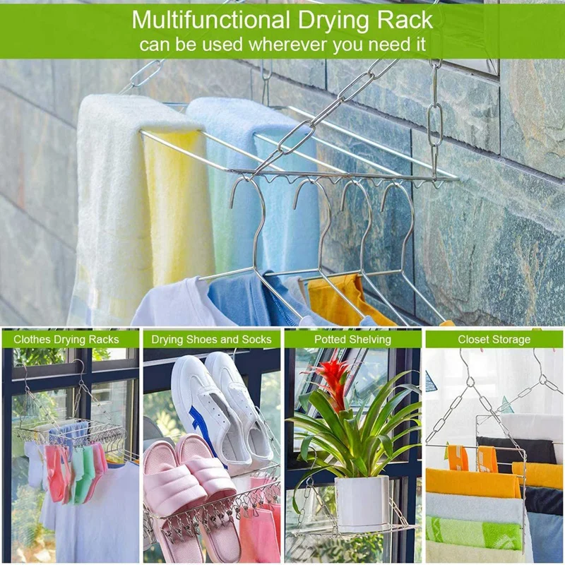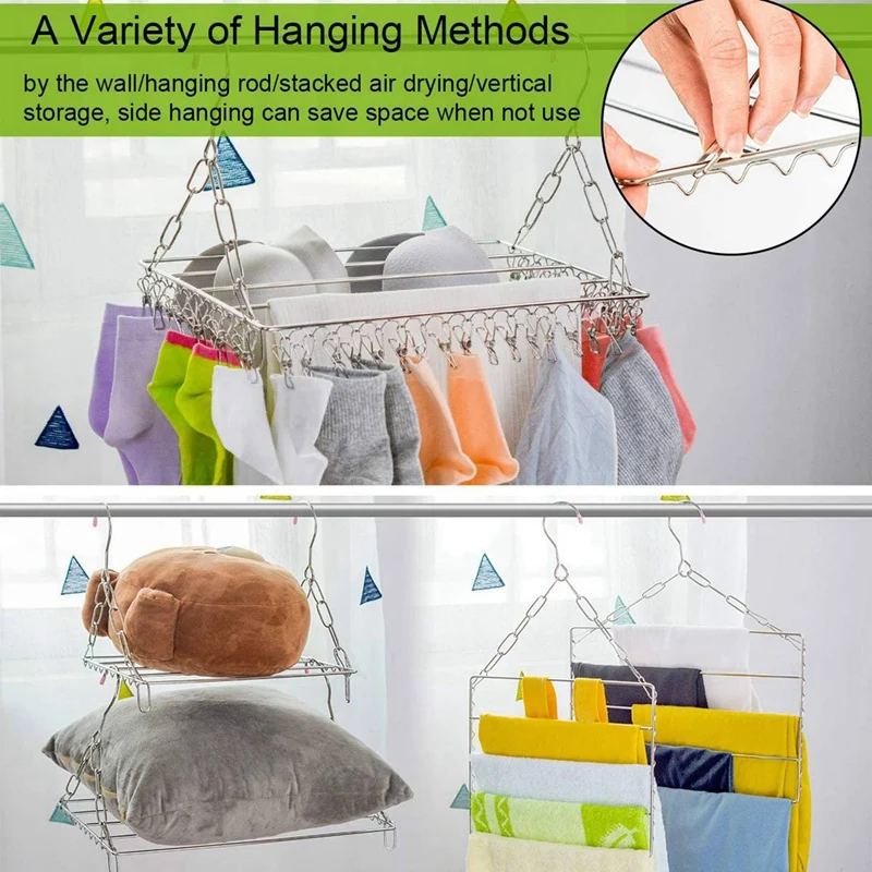 SOLID 4.0MM STAINLESS STEEL: clothes drying rack is made of preferably thickened 4.0mm stainless steel, strong and meticulous welding results in durable and stable bearing force without deformation and fracture. The good polishing processing won't scratch any of your clothes and stainless steel will not leave rust or marks on the clothing.