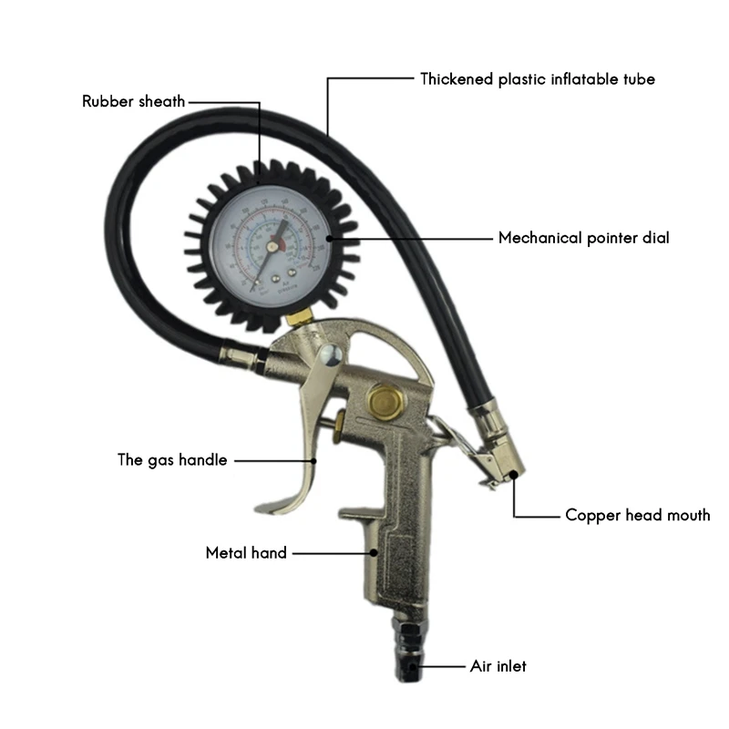 Автомобильные шины имеют функции дефляции, надувания и тестирования шин, и воздушный насос может быть подключен к двигателю транспортного средства, чтобы иметь функцию удаления пыли.
