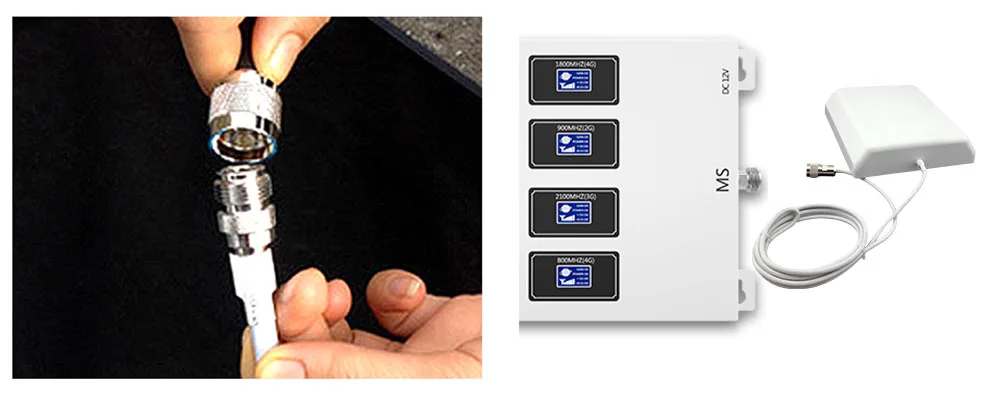 Step2: Use 10m cable to connect the outdoor antenna and singal booster.Please ensure they were tightenned joints,connected well. Step3:Connect the indoor antenna and the singal booster.