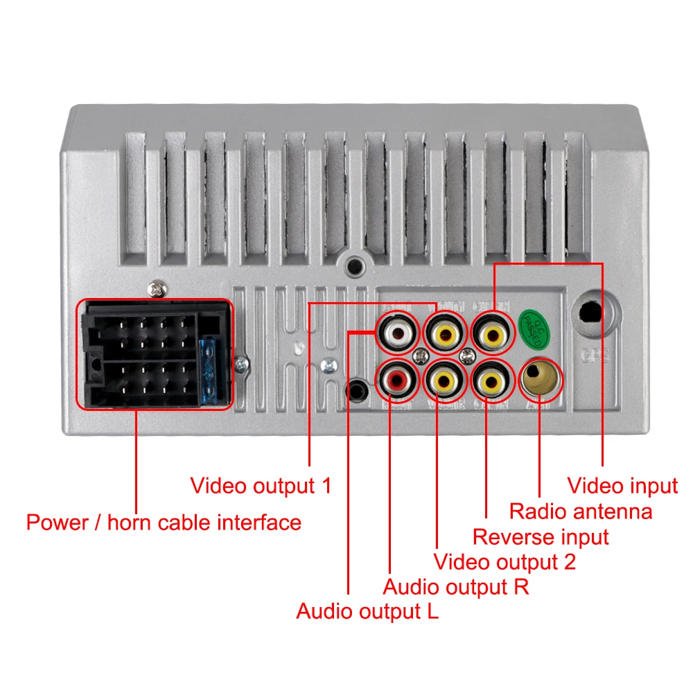 RCA:2 видеовыхода, 1 Реверсивный вход, 2 аудиовыхода, 1 видеовход