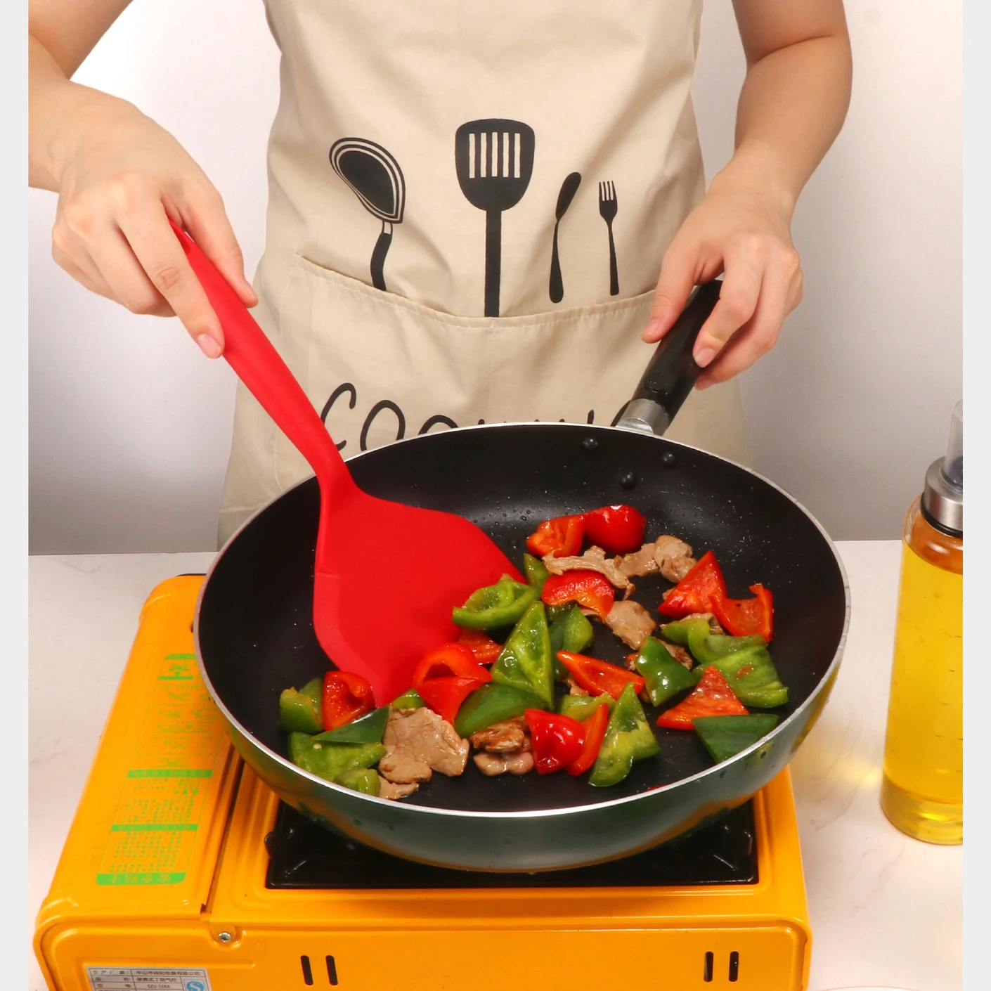 Кулинарный шпатель изготовлен из высококачественных материалов, внутренняя часть шпателя изготовлена из нейлона, а внешняя часть изготовлена из силикона, пищевой силикон безопасен для использования для любого типа пищи, и он не испортит горшок.