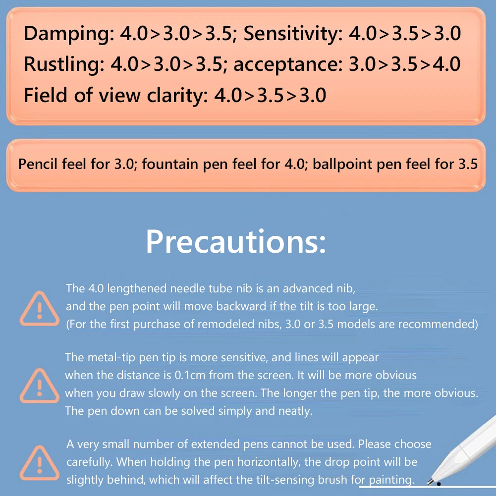 Удлиненный наконечник трубки 4,0 является передовым наконечником, и точка ручки будет двигаться назад, Если наклон слишком большой. (Рекомендуется для первой покупки обновленных моделей nibs, 3,0 или 3,5)