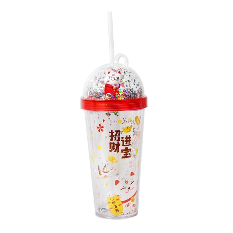 Пластиковая чашка Lucky Cat: Пластиковая чашка с крышкой, подходит для всех холодных и замороженных напитков, таких как кофе со льдом, молочный коктейль, жареный сок, смузи и коктейль. Вы можете использовать его в разных случаях.