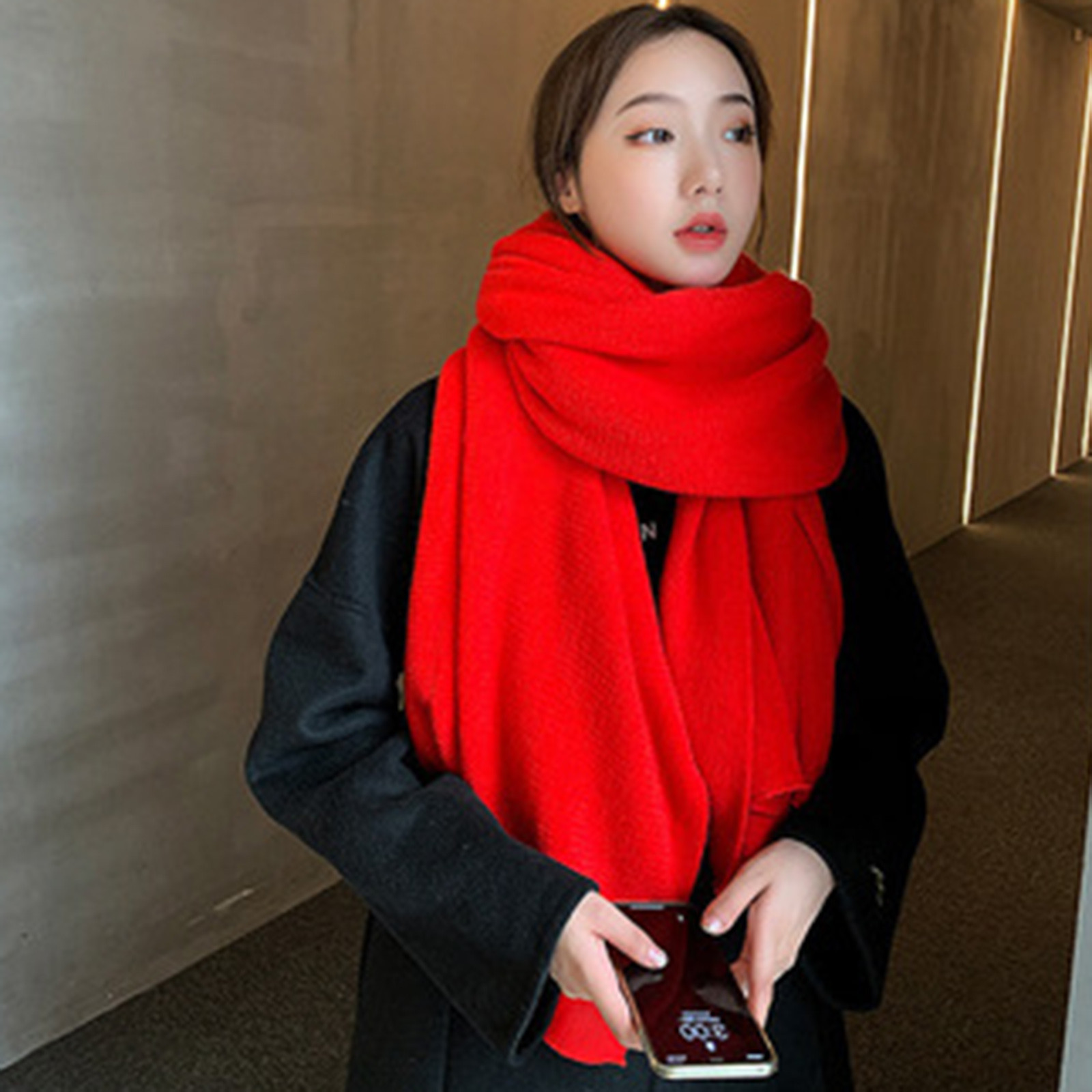 Классическая женская обувь Одноцветный шарф ретро женский многоцелевой шарф вязаный шарф