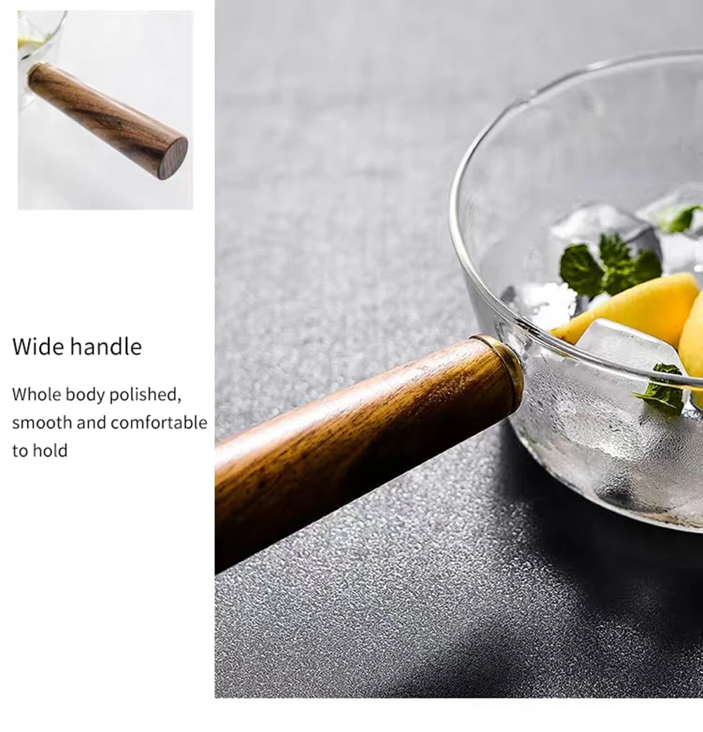 Стеклянная деревянная ручка молочный горшок Бытовая детская еда может открыть огонь горячий молочный лапша 400 мл 600 мл горшок прозрачный фруктовый тушеный горшок посуда