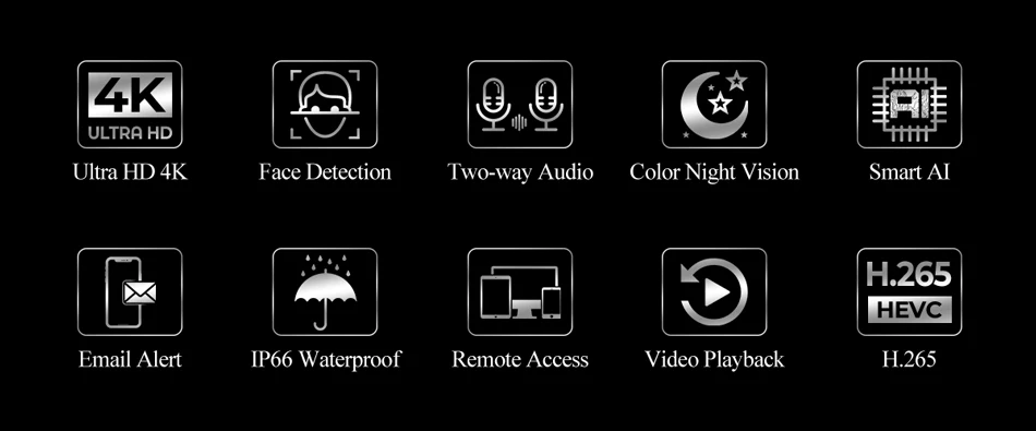 * Он поддерживает распознавание лиц, но он должен использоваться с новейшим видеорегистратором Techage POE, чтобы отразить эту функцию, NVR другого бренда может не отображать эту функцию.