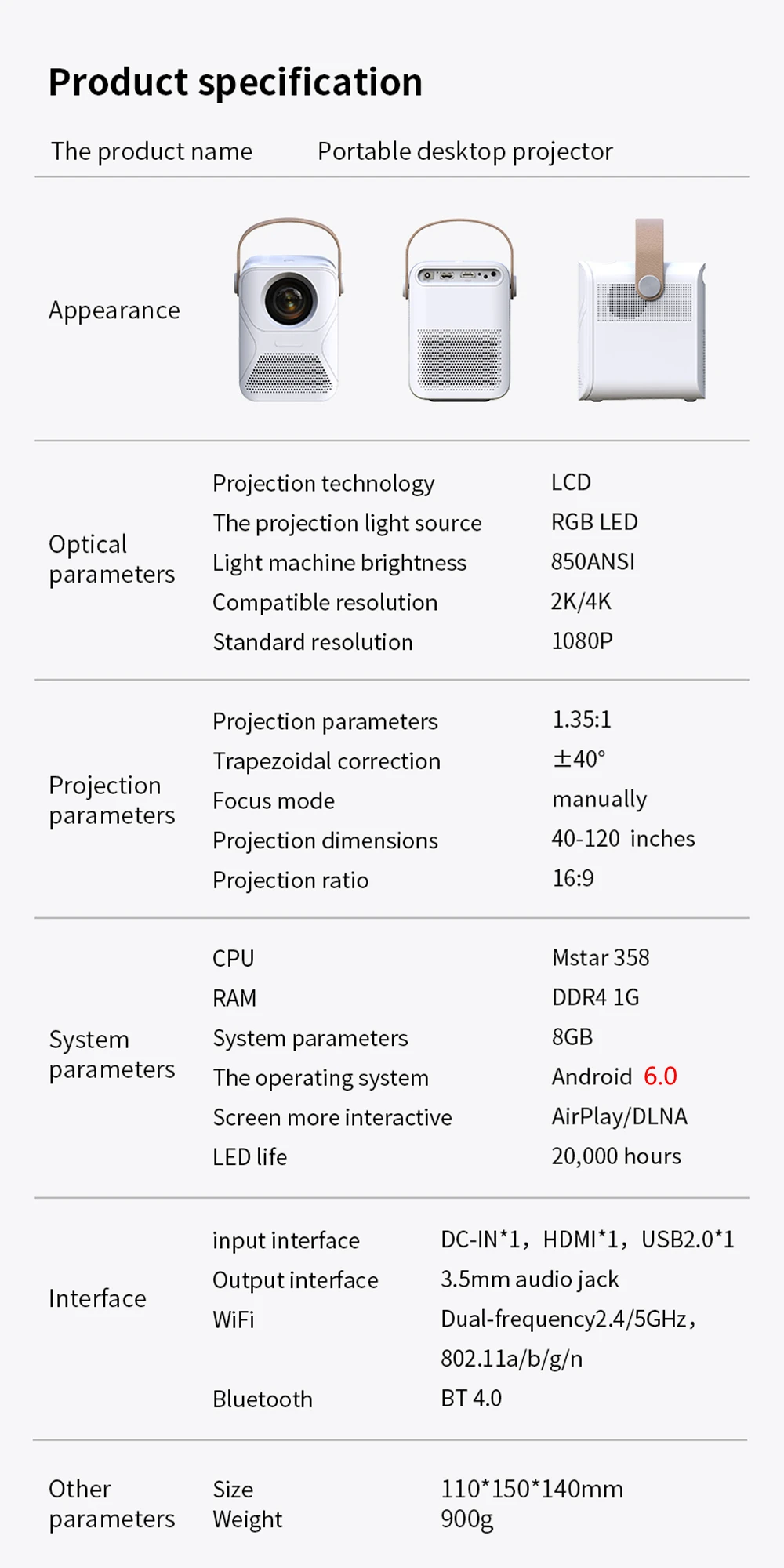 VCHIP x6 4K Projector Protable projector mini Proyector For Home Theater 3D 1080P WiFi Portable Media Player Christmas gift