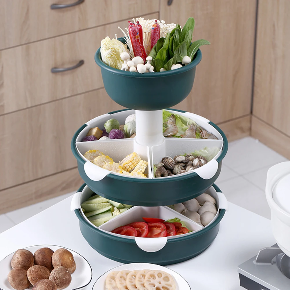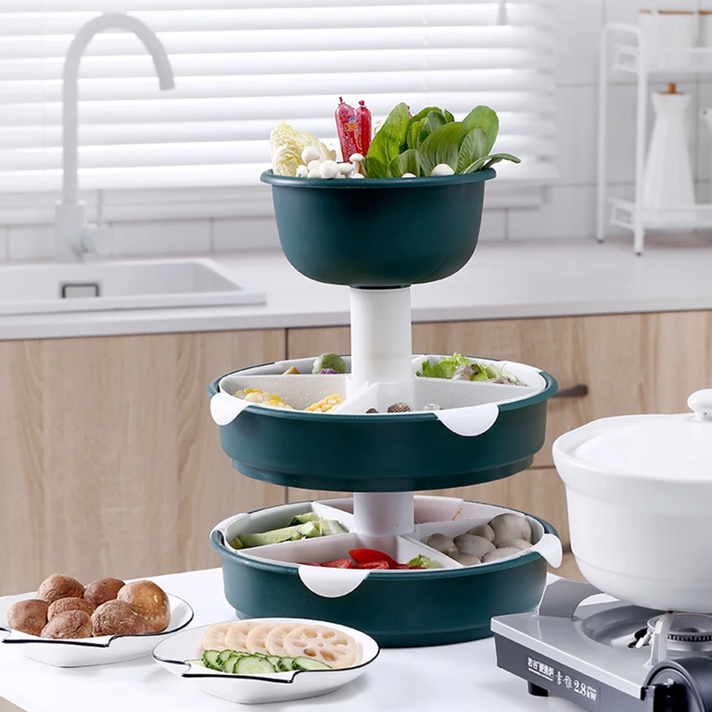 Creative rotating hot pot drain basket three-tiered hot pot assortment household fruit and vegetable basket kitchen basket rack