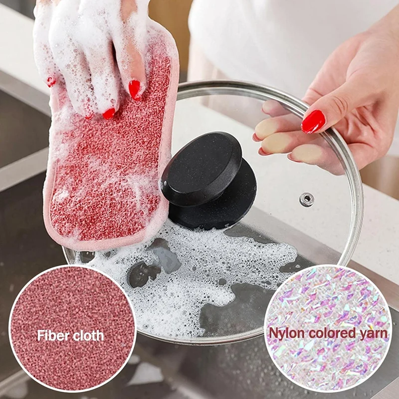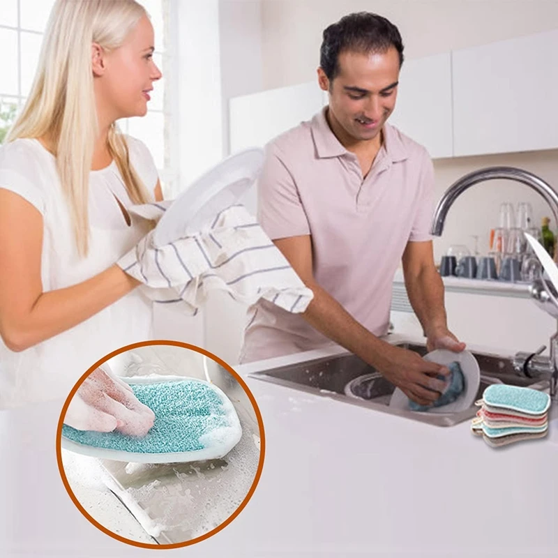 Double Sided: Washable dish sponge one side is microfiber for cleaning and wiping, the other is frosted to remove stuck food residue and stubborn dirt.