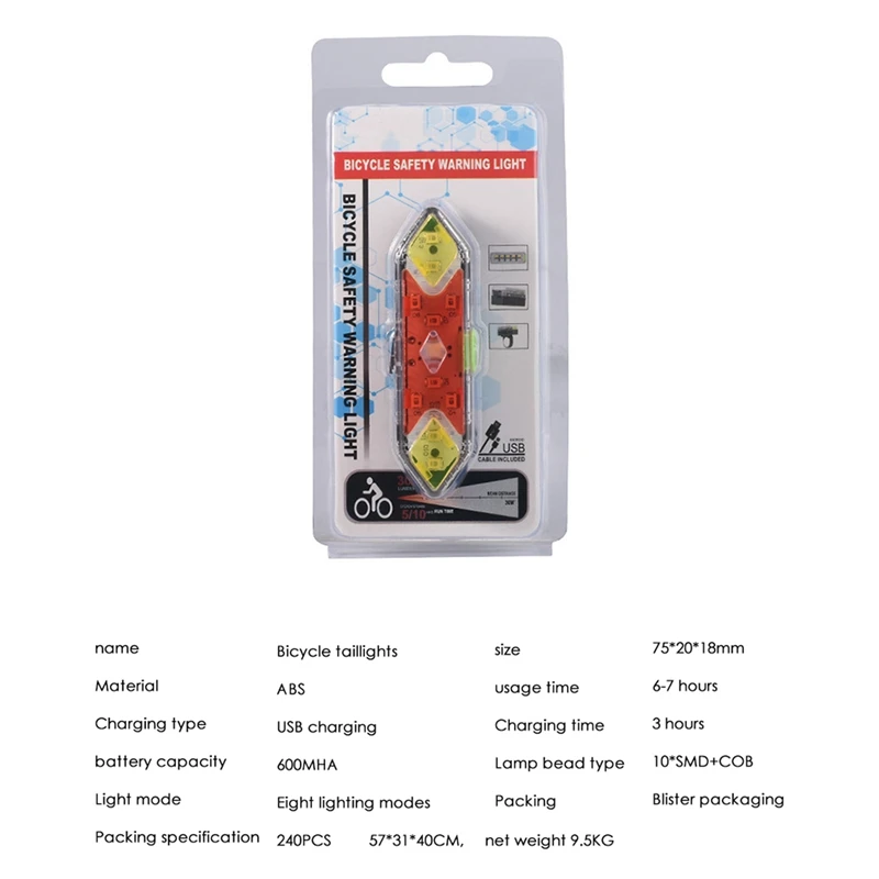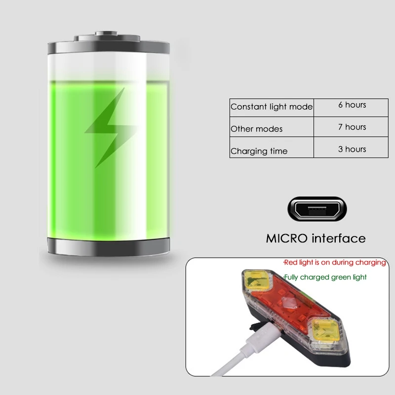 [ADVANCED DESIGN]The bike tail light is built in 600 mAh large capacity rechargeable lithium battery.After fully charged, it can work continuously for 7-8 hours.