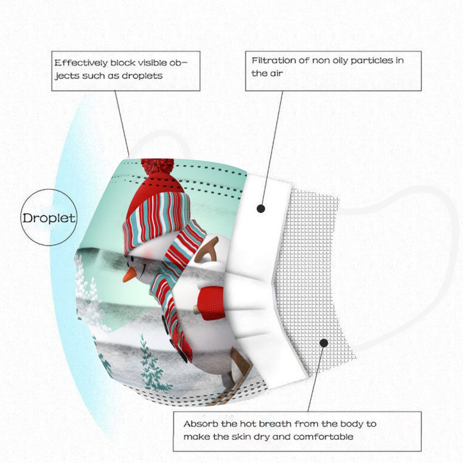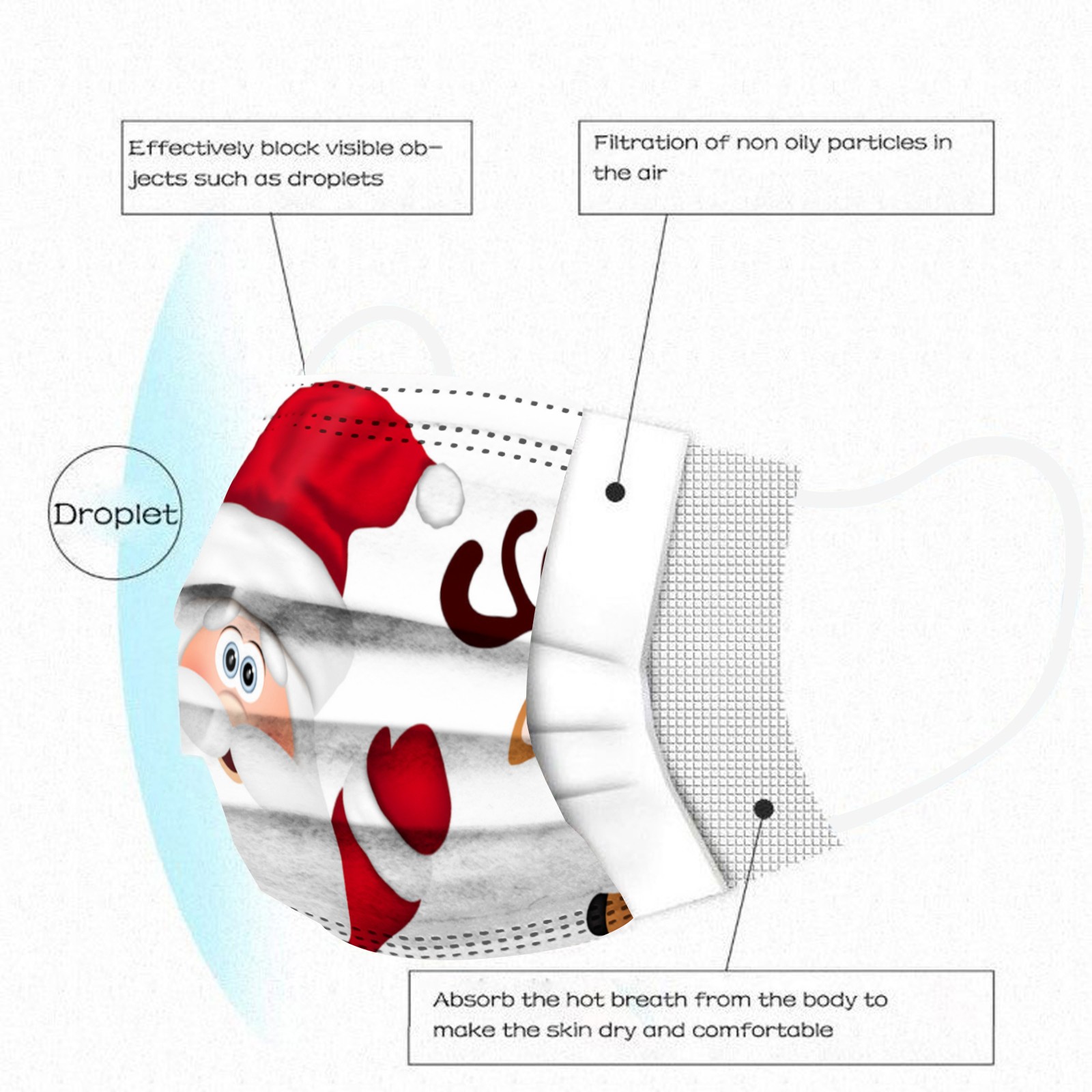 3 слоя Нетканая одноразовая маска изготовлена из 3 слоев нетканого материала, он безопасен для здоровья и безопасный для вас, чтобы использовать. Дышащий материал и милые узоры, что делает его полезным и модным. Специальный 3 слоя из нетканого материала, дизайн, обеспечивает некоторые защита от автомобильный отходящий газ, пыльцу и т. Д. Эластичная петля уха позволяет легко снимать и надевать цепочку и не давит на уши. Маникюрный салон или любые другие области, где может потребоваться защита