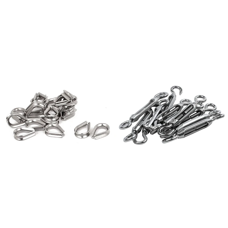 20 Pcs 2mm Wire Rope Cable Thimbles & 10 pcs M4 4mm Thread Adjustable Eye Hook Turnbuckle