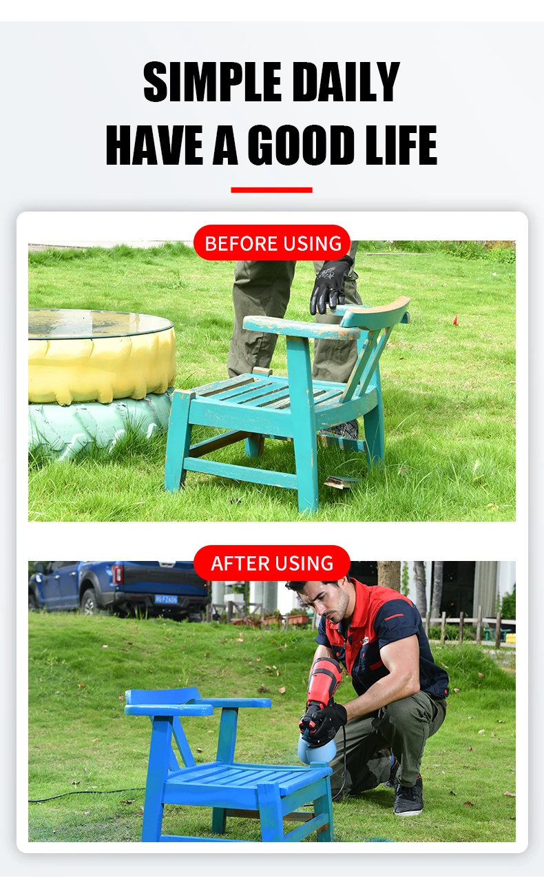 【Широкое применение 】 этот пистолет-распылитель краски идеально подходит для любого. С меньшим филированием, более высокой эффективностью и равномерным распределением, он подходит для столов, стульев, велосипедов, жалюзи, заборов, деревянных игрушек, внутренних стен и поделок стальной мебели, изготовления моделей и так далее.