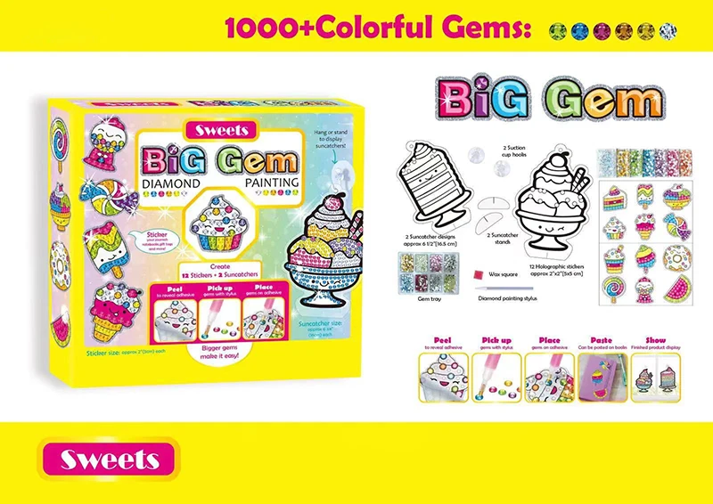 Большой драгоценный камень Алмазная наклейка Алмазная картина Bing Кристалл Необычные алмазные наклейки Блестящий Драгоценный Камень Дети DIY игрушки Стразы картина Блестящий детский подарок