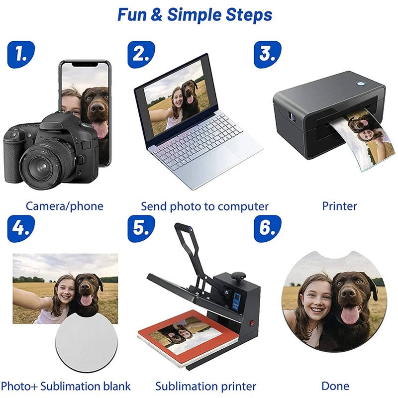 [EASY TO USE& CLEAN]Simply transfer the design or image you want with a heat press to create beautiful personalized cup coasters. There is a convenient notch on the side of the car coasters, which can be easily removed from the car cup holders for cleaning.