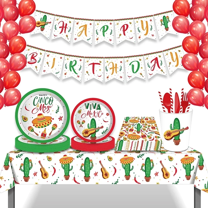 Мультфильм Кактус Альпака одноразовая посуда набор Мексиканская бумага кактус тарелки салфетки под чашки ребенок день рождения пользу Декор свадебные принадлежности