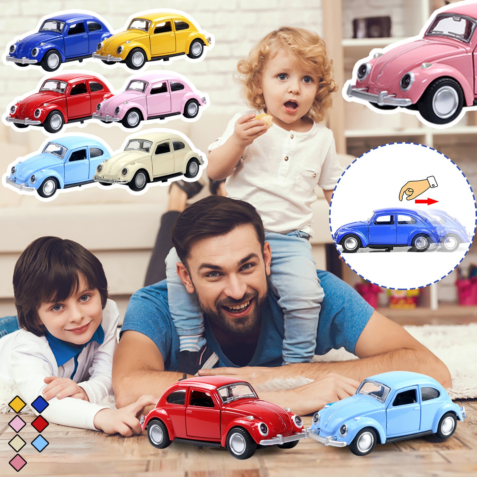 Наши мини-автомобили с животными не требуются. Потяните назад транспортные средства оснащены, чтобы сделать игровой опыт максимально простым.