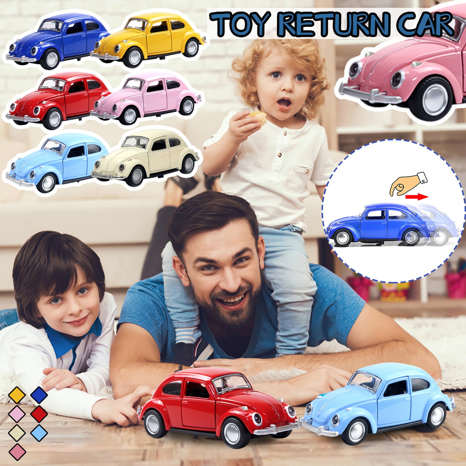 Просто потяните заднюю часть автомобиля, затем он автоматически перемещается вперед без электричества. Эти простые автомобили идеально подходят для детей ясельного возраста.