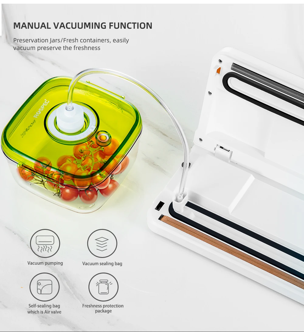ROSPEC автоматический вакуумный упаковщик серии RPFP VS-168. Быстрый и эффективный, наш вакуумный упаковщик работает почти бесшумно. Полностью автоматическая работа обрабатывает все тяжелые подъемы для вас. Два разных режима герметизации позволяют быстро работать с любой продукцией (сухой/влажной), которую вы хотите безопасно хранить. Автоматический вакуумный упаковщик Rospec VS-168 с модным дизайном, простой функцией работы, а также мощным насосом, именно поэтому многие молодые люди предпочитают это, и мы считаем, что это будет хорошим помощником в вашей жизни.