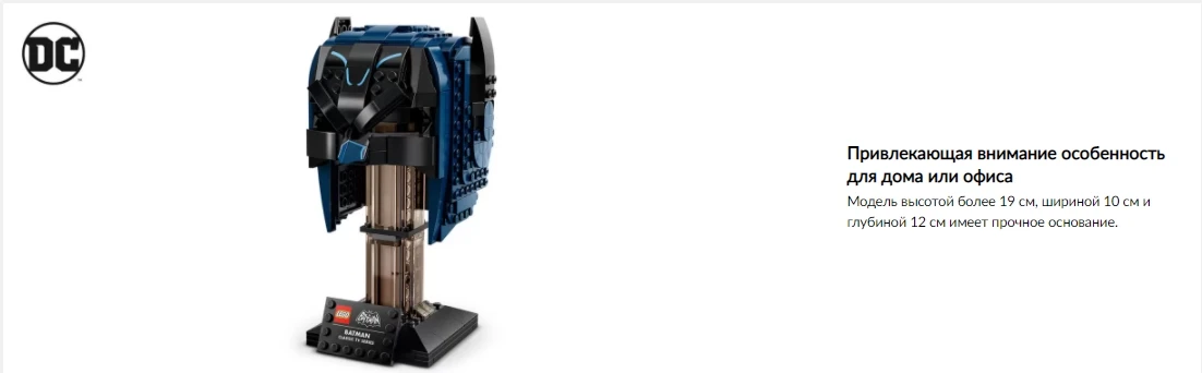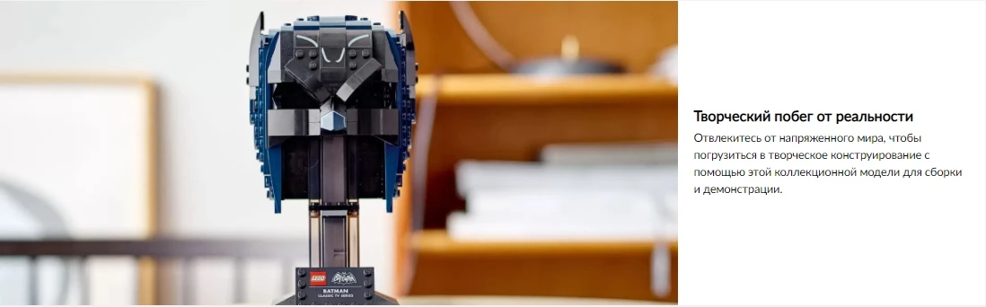 Маска Бэтмена из классического сериала LEGO® DC Batman™ (76238) создана специально для взрослых поклонников и передаёт узнаваемый стиль любимого сериала.