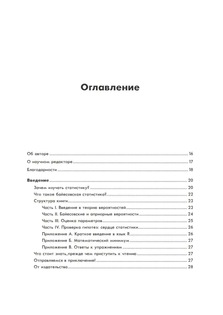 Пора забыть про заумные и занудные университетские лекции! Эта книга даст вам полное понимание байесовской статистики буквально «на пальцах» — с помощью простых объяснений и ярких примеров.