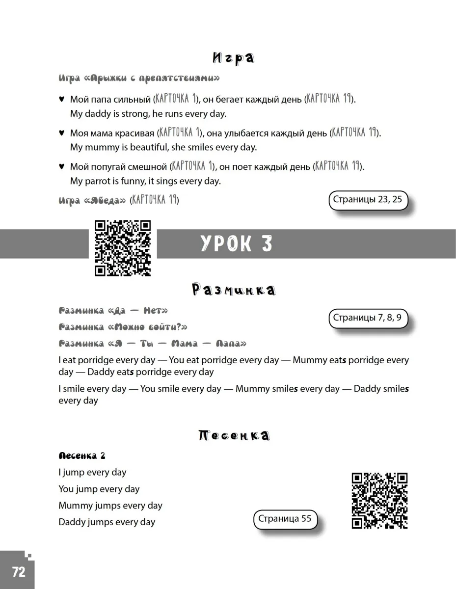 В этой книге вас ждут новые игры, новые песенки, новые разминки и, конечно, новые мнемокарточки! Кроме того, все уроки сопровождаются аудиозаписями, которые вы сможете скачать, перейдя по ссылке или по QR-коду.