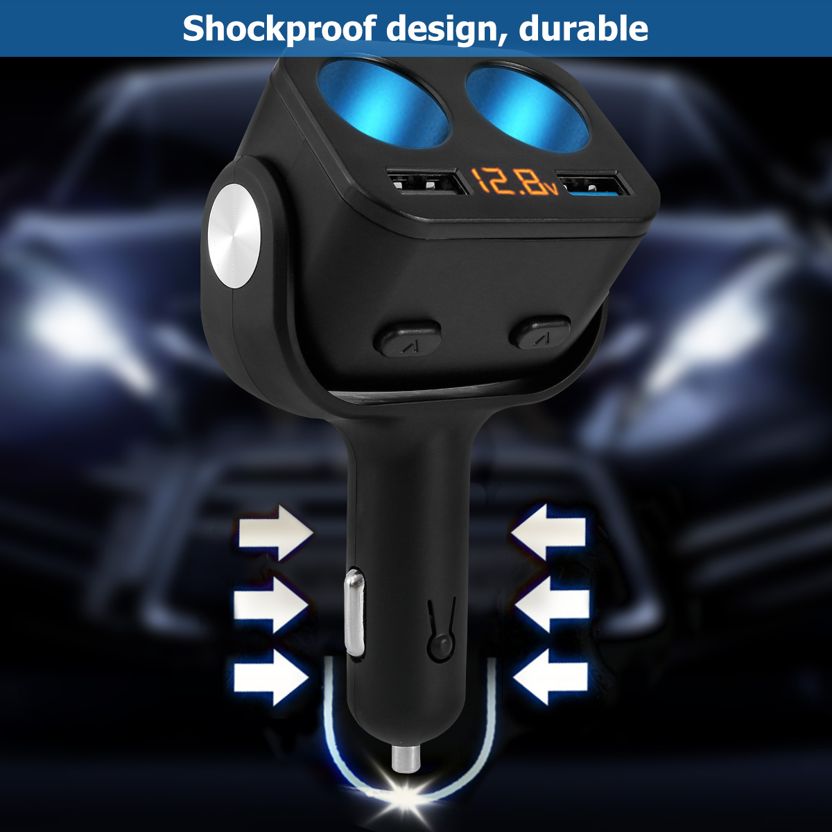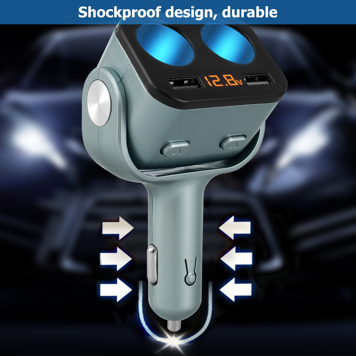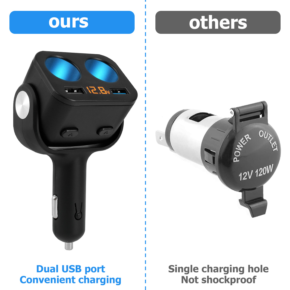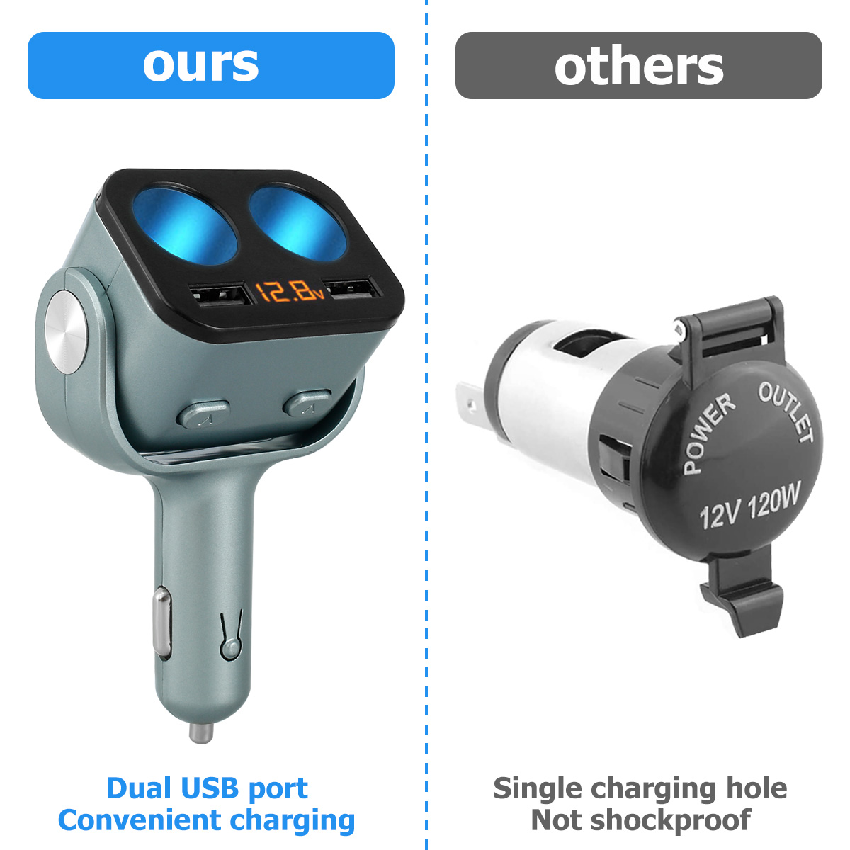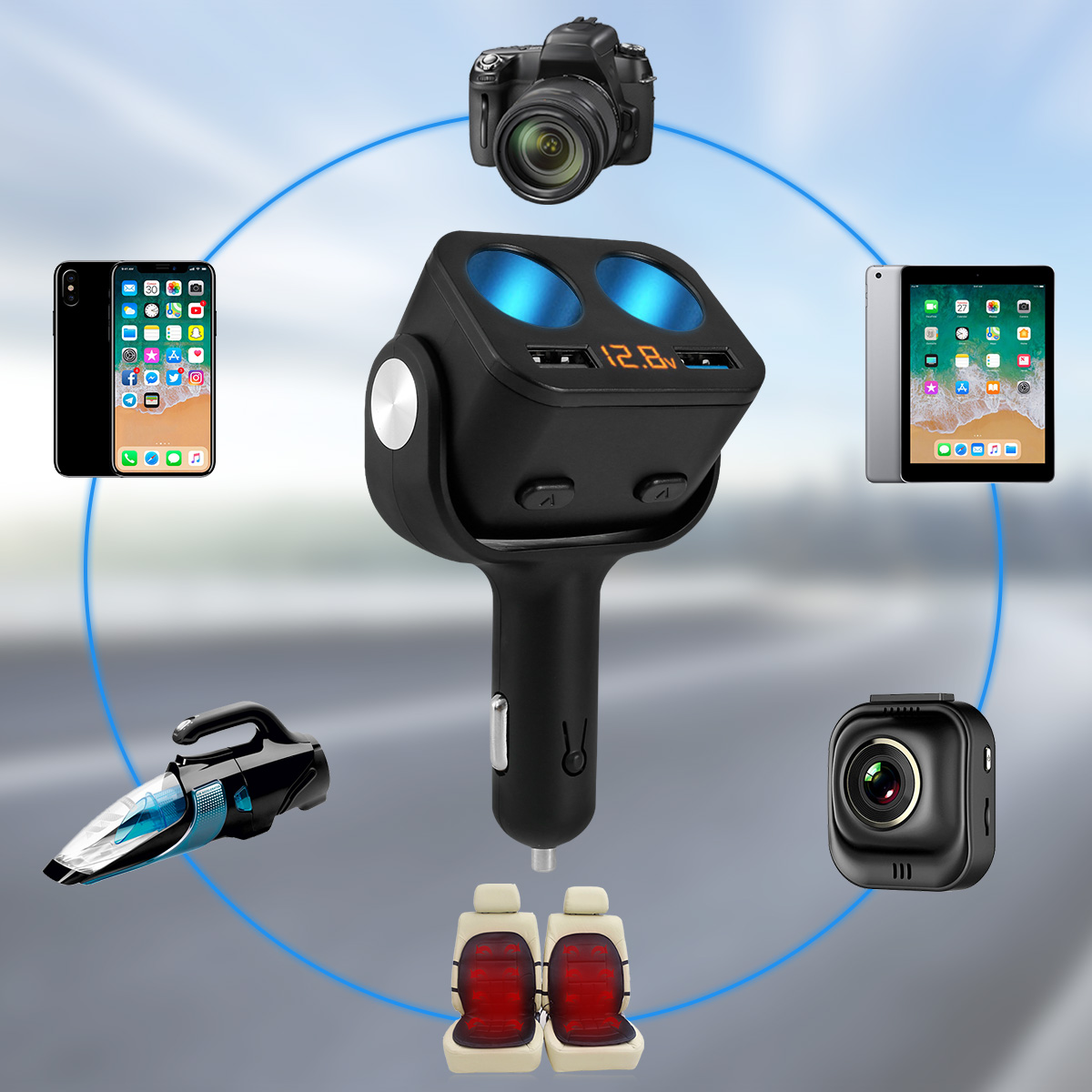1. Прикуриватель сочетает в себе 2 гнезда прикуривателя и 2 порта USB для зарядки, чтобы превратить прикуриватель в многофункциональный адаптер питания, который поддерживает одновременную зарядку нескольких устройств. Защита от перенапряжения и перегрузки по току, чтобы избежать рисков для оборудования.