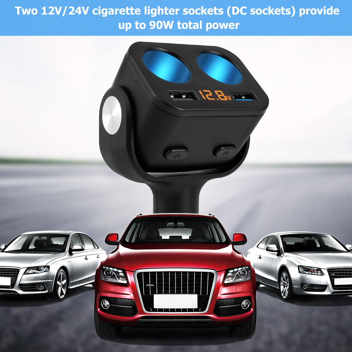 3. Два 12V/24V прикуривателя розетки (розетки постоянного тока) обеспечивают полную мощность до 90 Вт, который является достаточно, чтобы использовать различные портативные электрические приборы в вашем автомобиле в одно и то же время.