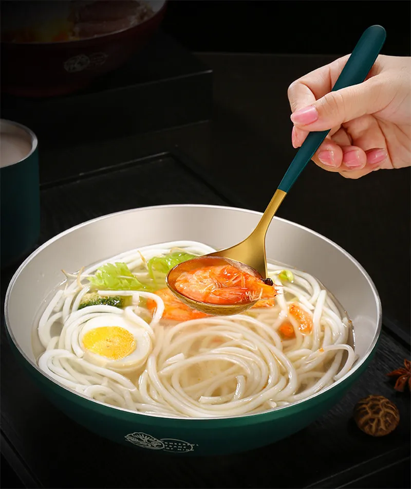 3. Многофункциональность: суповая ложка достаточно глубокая, чтобы держать нужное количество пищи, очень подходит для черпания и подачи соусов, соуса и бульона, а Прорезная ложка-хороший дуршлаг, который может удалить еду из масла или фильтр для супа.
