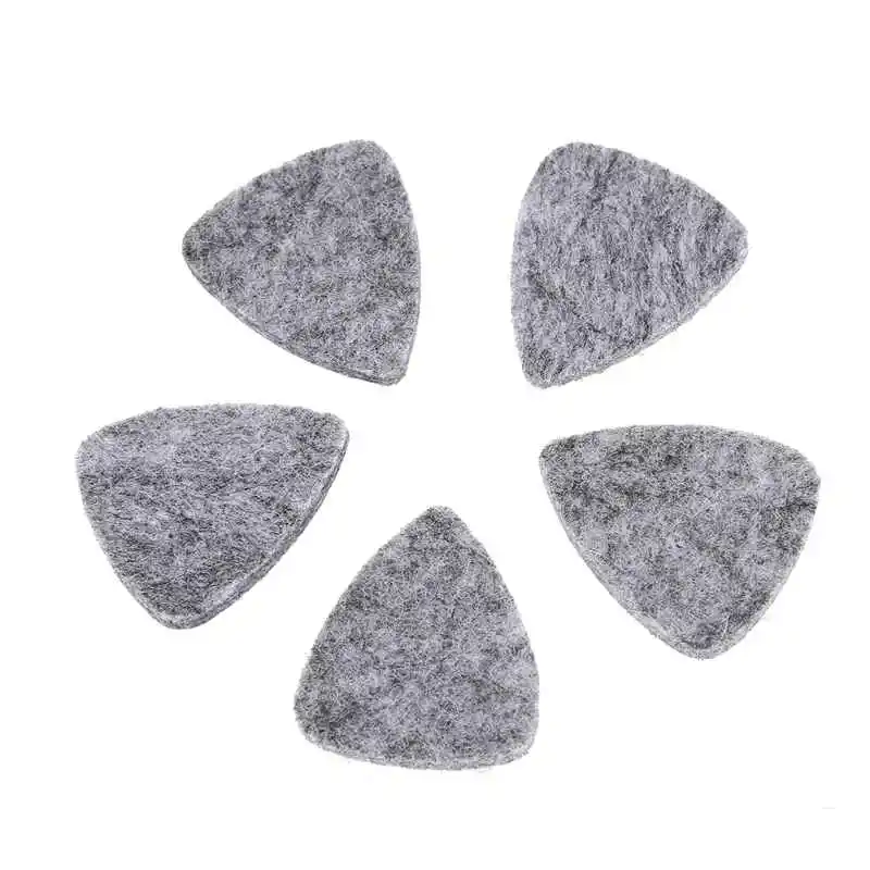 Эти войлочные медиаторы изготовлены из синтетического войлока. Не издавайте ударный звук, так как пластик и металл выбираются при попадании струн. Он подходит для Гавайских гитары и гитарных струн.
