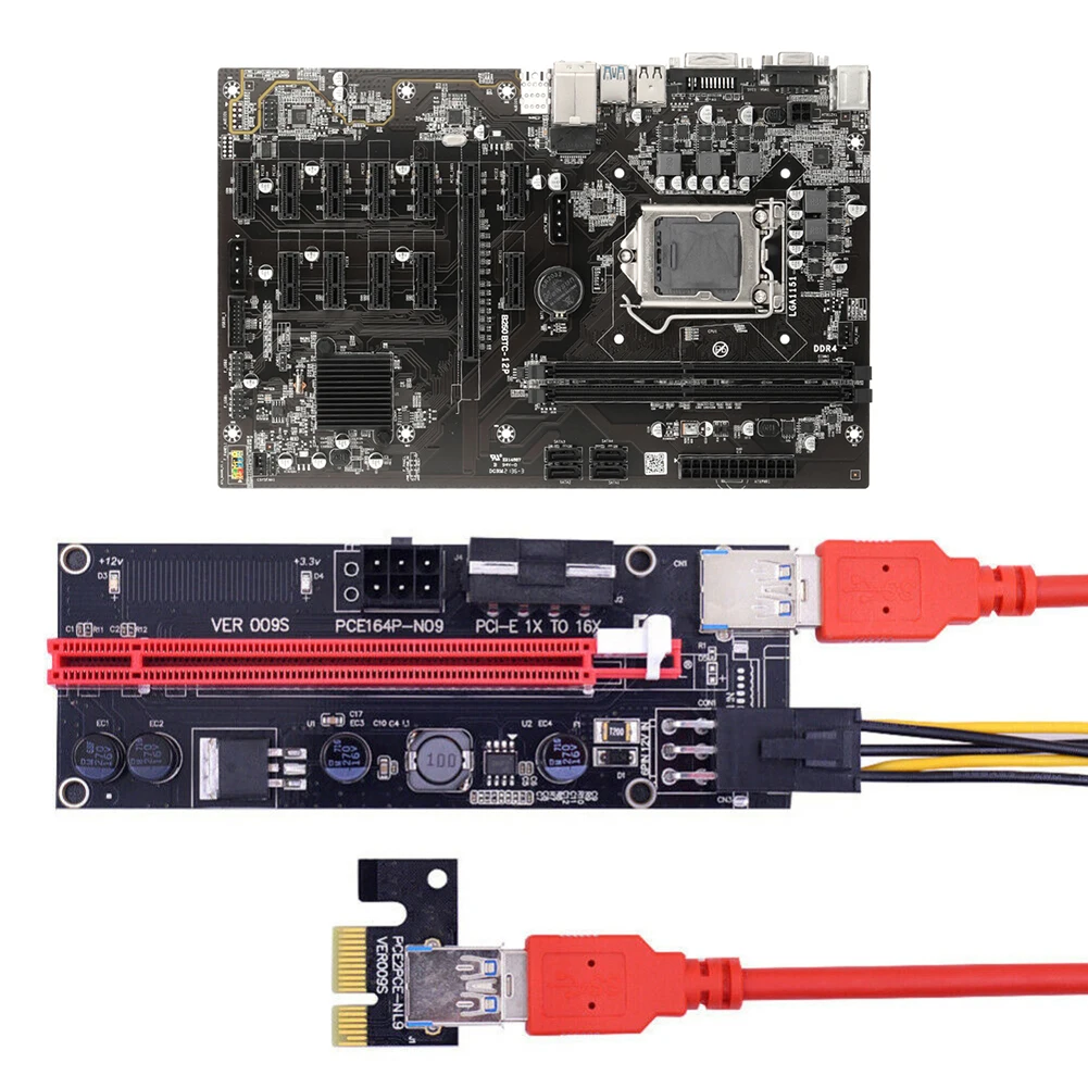 B250 BTC 12P Шахтерская материнская плата + G3900 CPU + 2XDDR4 4G память + 12X009S адаптер Шахтерская плата набор LGA 1151 6/7 PCI-E X16/X1 USB2.0/3,0 SATA3.0 компьютерные аксессуары
