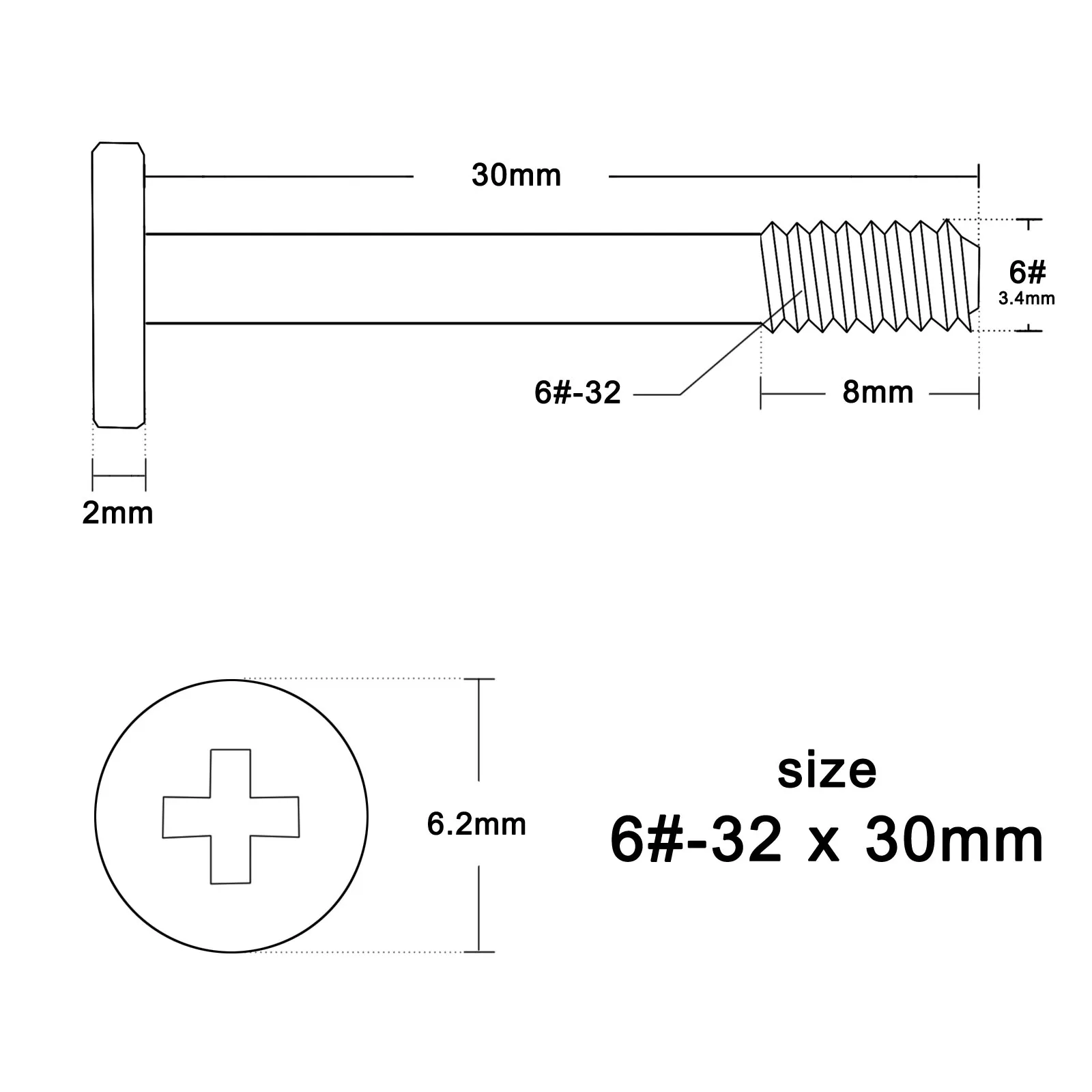 Диаметр резьбы: 6 #-32 (3,4 мм)