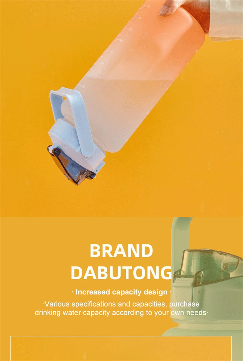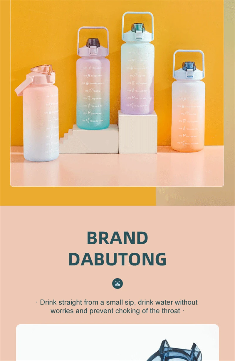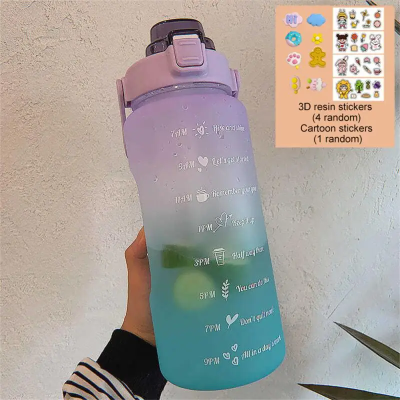 2 Liter Large Capacity Free Motivational With Time Marker Fitness Jugs Gradient Color Plastic Cups Outdoor Frosted Water Bottle