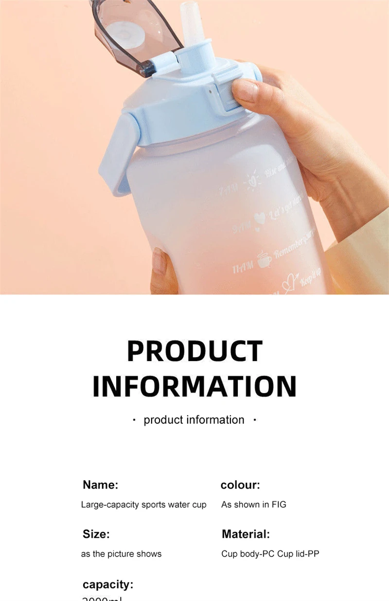 1. Large capacity 2L straw cup