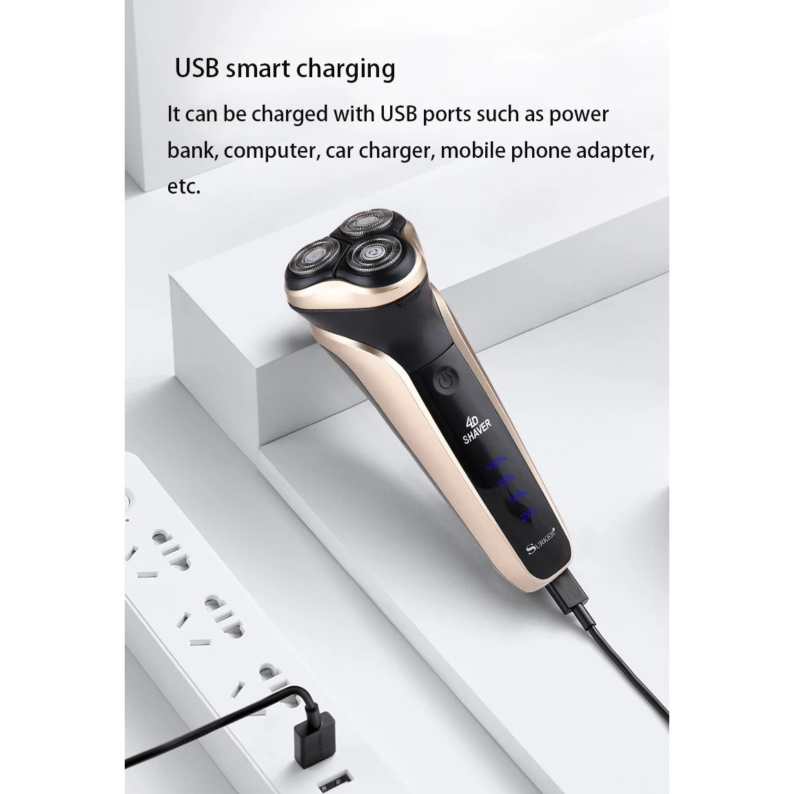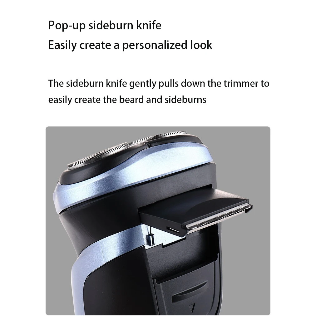 3D Независимая плавающая режущая головка: Эта Бритва имеет три набора независимо плавающих режущей головки, которые добавляют 1/3 области бритья, чем обычная двойная режущая бритва. Режущая головка имеет гладкий пресс и эластичный шпон, чтобы адаптироваться к различным контурам лица.
