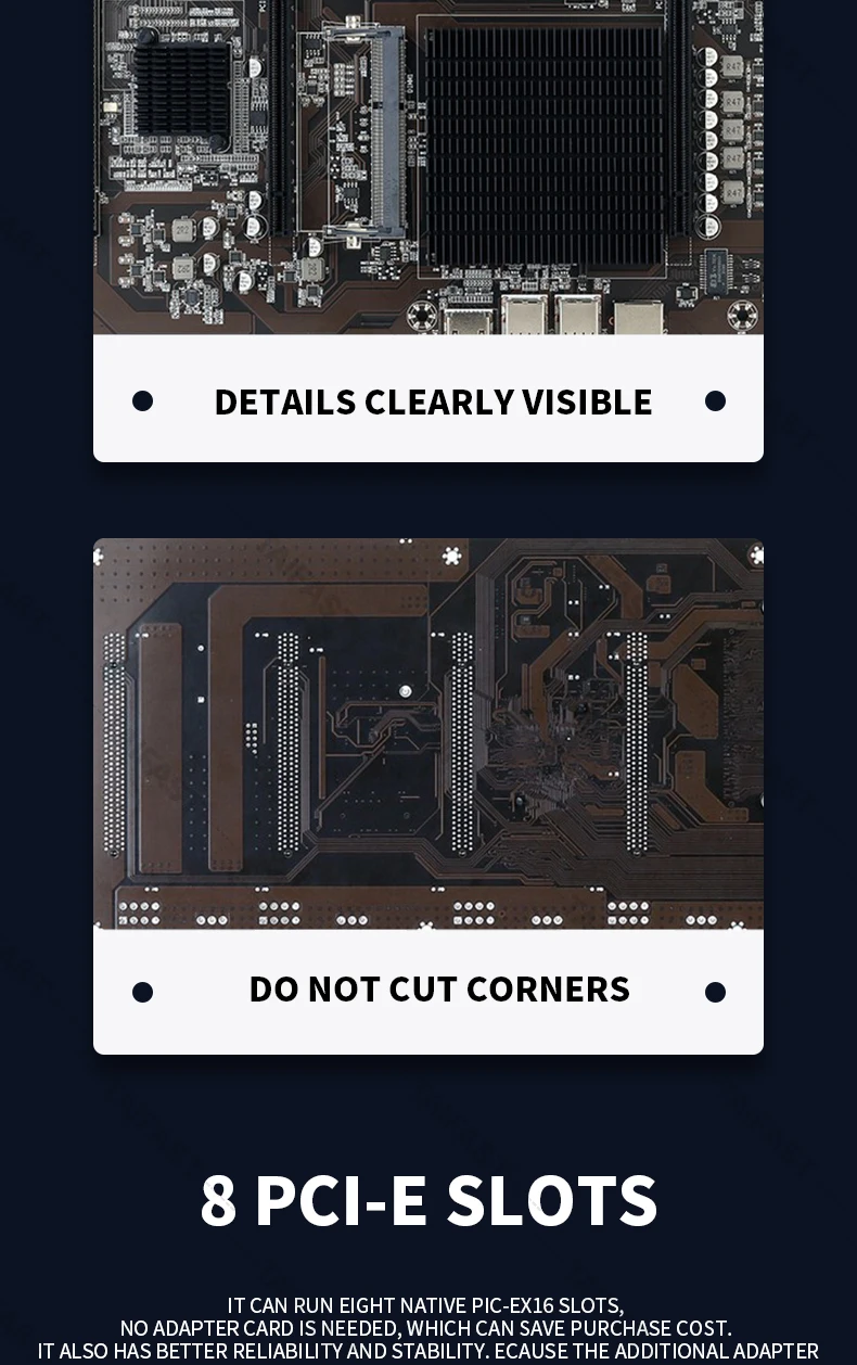 Эта материнская плата имеет большой шаг карты дисплея 65 мм, который является более стабильным без переключения.