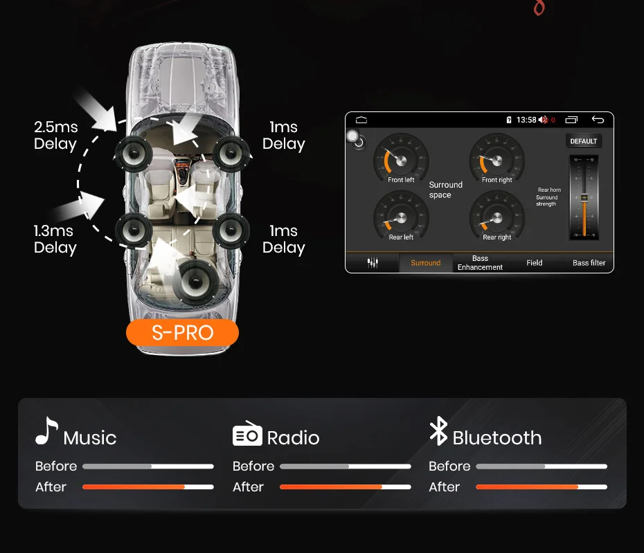 Вы можете настроить звук для ваших личных предпочтений, с 9 графический эквалайзер: поп, рок, джаз, Классическая, без каблука, пользователя, голоса и т. д.