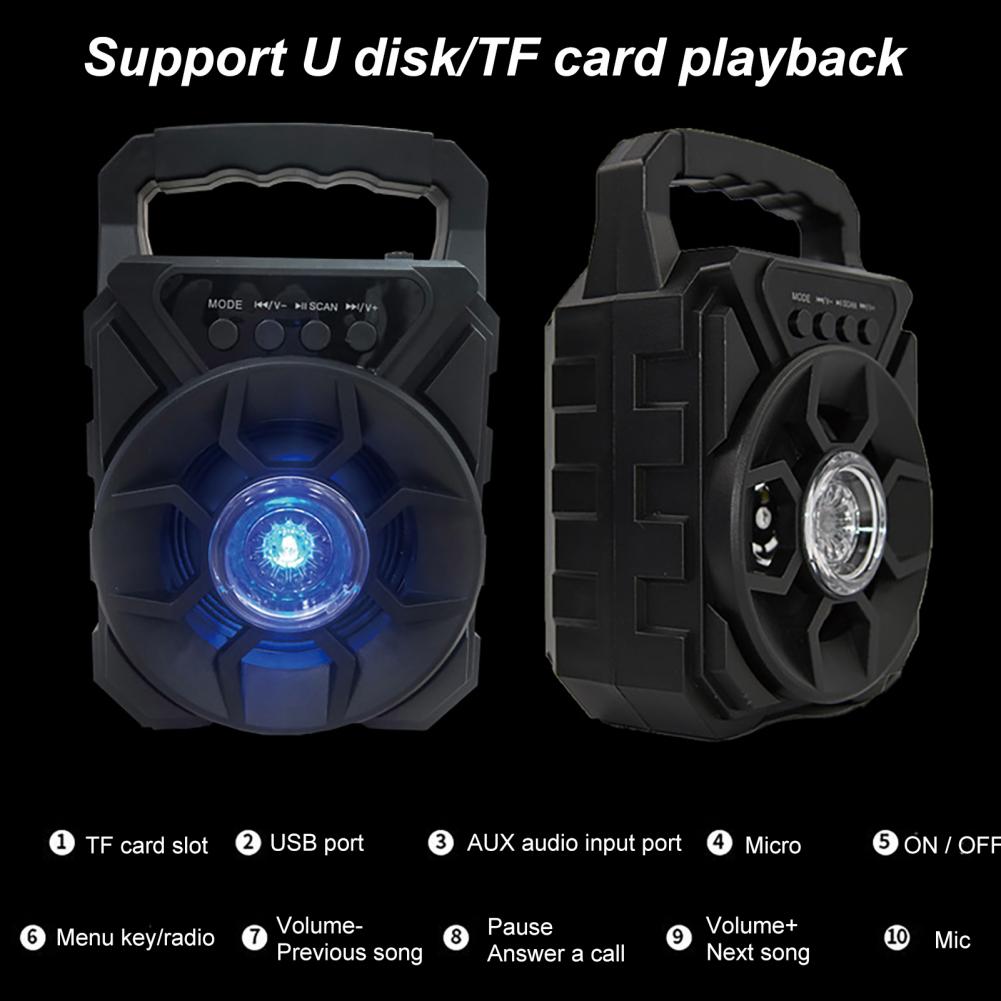 Sound Box HiFi FM Radio Portable Bluetooth-compatible 5.0 Speaker with LED Light for Outdoor
