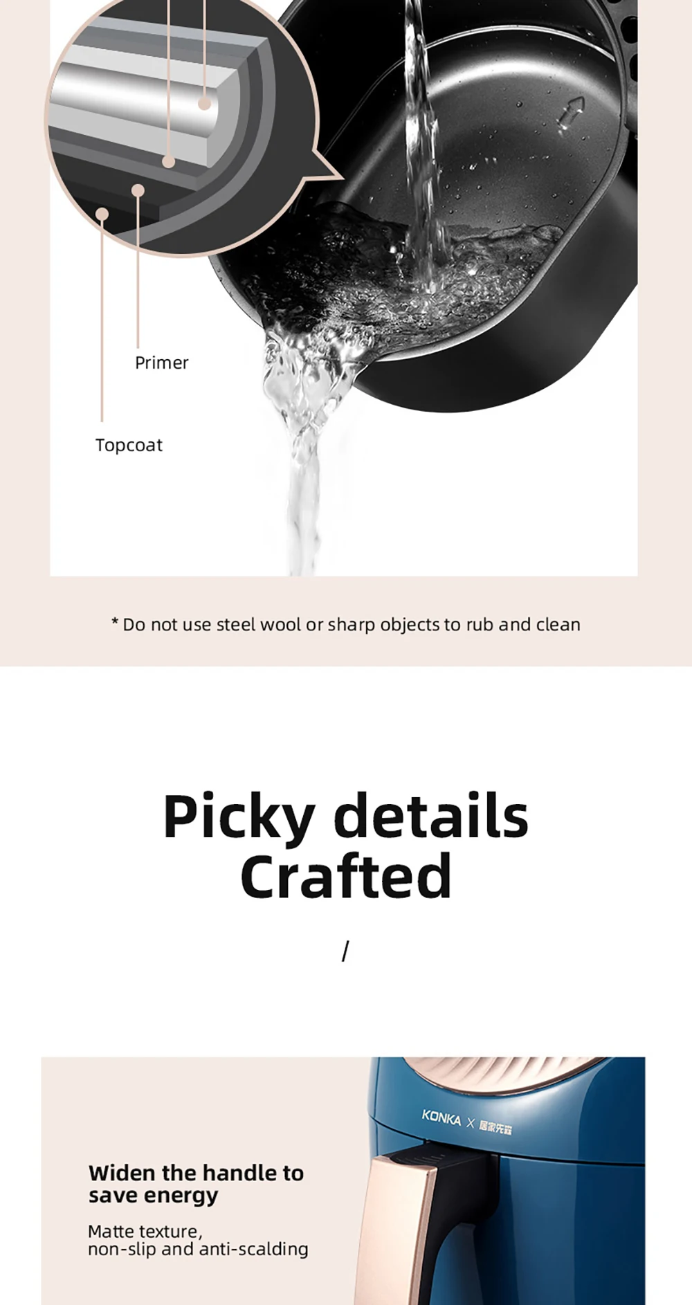 3. Строго подобранные качественные антипригарные материалы, очень удобная и быстрая очистка