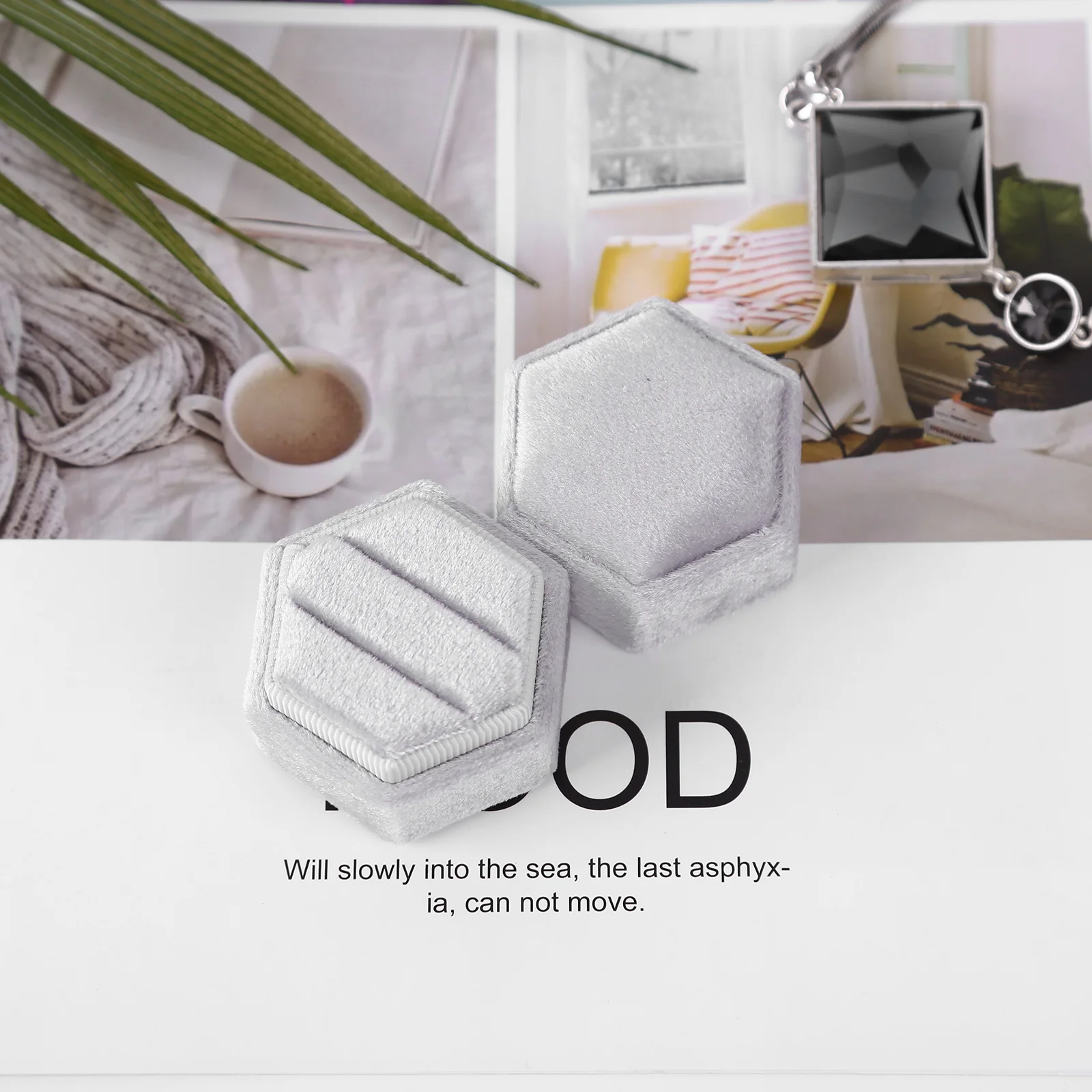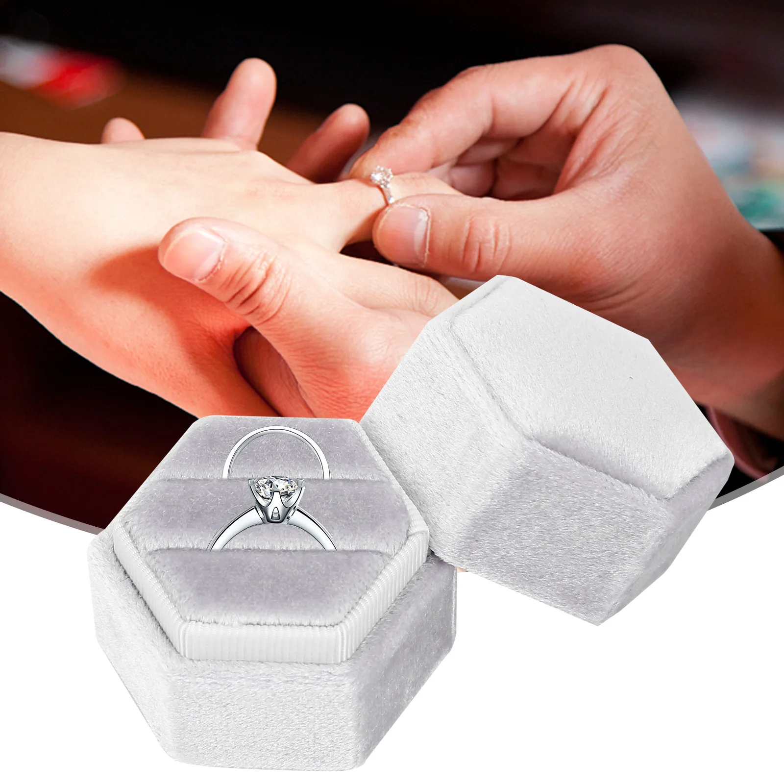 Шестигранная бархатная коробка для ювелирных изделий, чехол для обручальных колец, коробка для Keepsake, винтажная Подарочная коробка с двойными отделениями для ювелирных изделий для свадебной церемонии, помолвки, предложения, дня рождения и юбилея